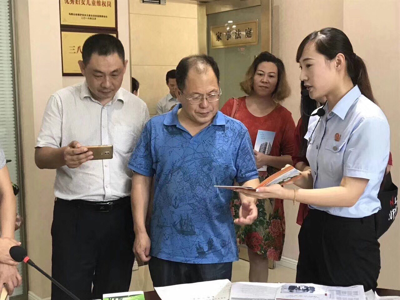 考察团先后参观了雨山法院诉服中心、金融商贸诉调对接中心、家事审判庭、“夕阳红”志愿者调解中心、心理疏导室和家风家训文化长廊;并现场体验了司法机器人“小雨”的服务。